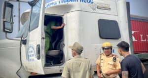 Hình ảnh CSGT kiểm tra tài xế ở cảng container lớn nhất nước