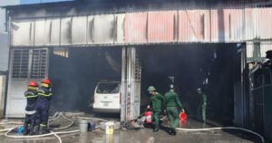 Cháy tiệm sửa xe, 5 ôtô bị thiêu rụi