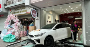Lùi xe ôtô, nữ tài xế tông gãy chân bảo vệ cửa hàng trang sức