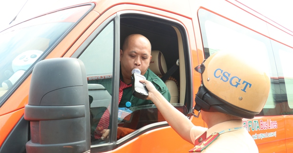 Phòng CSGT, Công an TP HCM kiểm tra nồng độ cồn tài xế xe khách Ảnh: Ý LINH