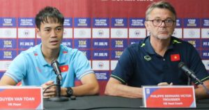 Văn Toàn cùng HLV Troussier trong buổi họp báo trước trận đấu với chủ nhà [...]