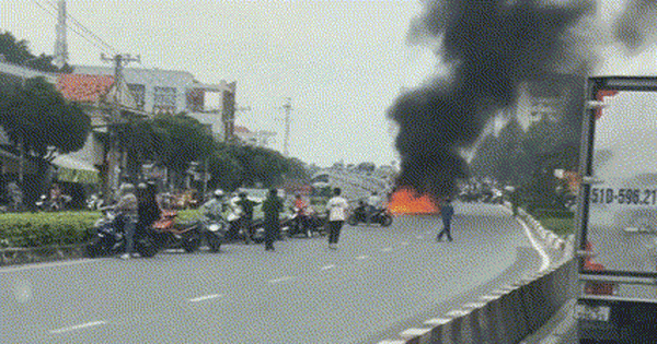 Sau đó, lửa bùng lên thiêu rụi hai xe máy. Những người trên xe máy nhanh chóng vội thoát khỏi xe.