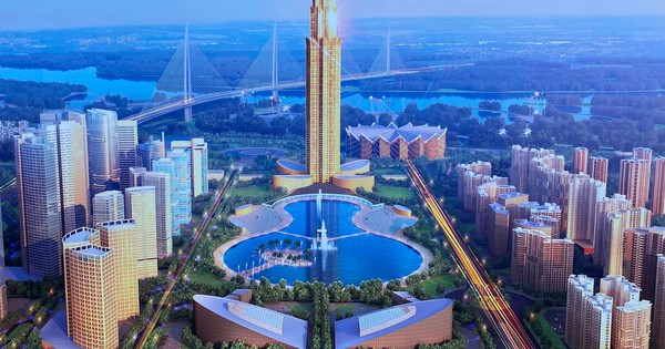 Phối cảnh thành phố thông minh Bắc Hà Nội với tháp tài chính 108 tầng ở vị trí trung tâm