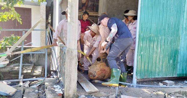 Trước đó, tại vườn nhà của một người dân tại xã Hạ Trạch, huyện Bố Trạch, tỉnh Quảng Bình, trong lúc đào móng để xây dựng nhà vệ sinh, một số người phát hiện quả bom lớn.
