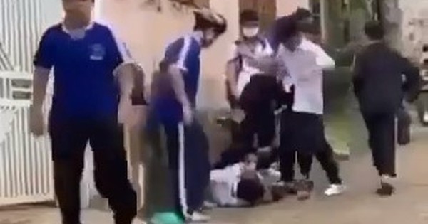 Bị tấn công tới tấp, nam sinh này ngã xuống đường. Tuy nhiên, nhóm nam sinh vẫn điên cuồng lao vào dùng chân đá liên tiếp vào mặt, đạp vào đầu. Trước sự tấn công này, nam sinh chỉ biết dùng tay ôm đầu chịu trận. Một số nam sinh khác cũng vào can ngăn nhưng không hiệu quả.